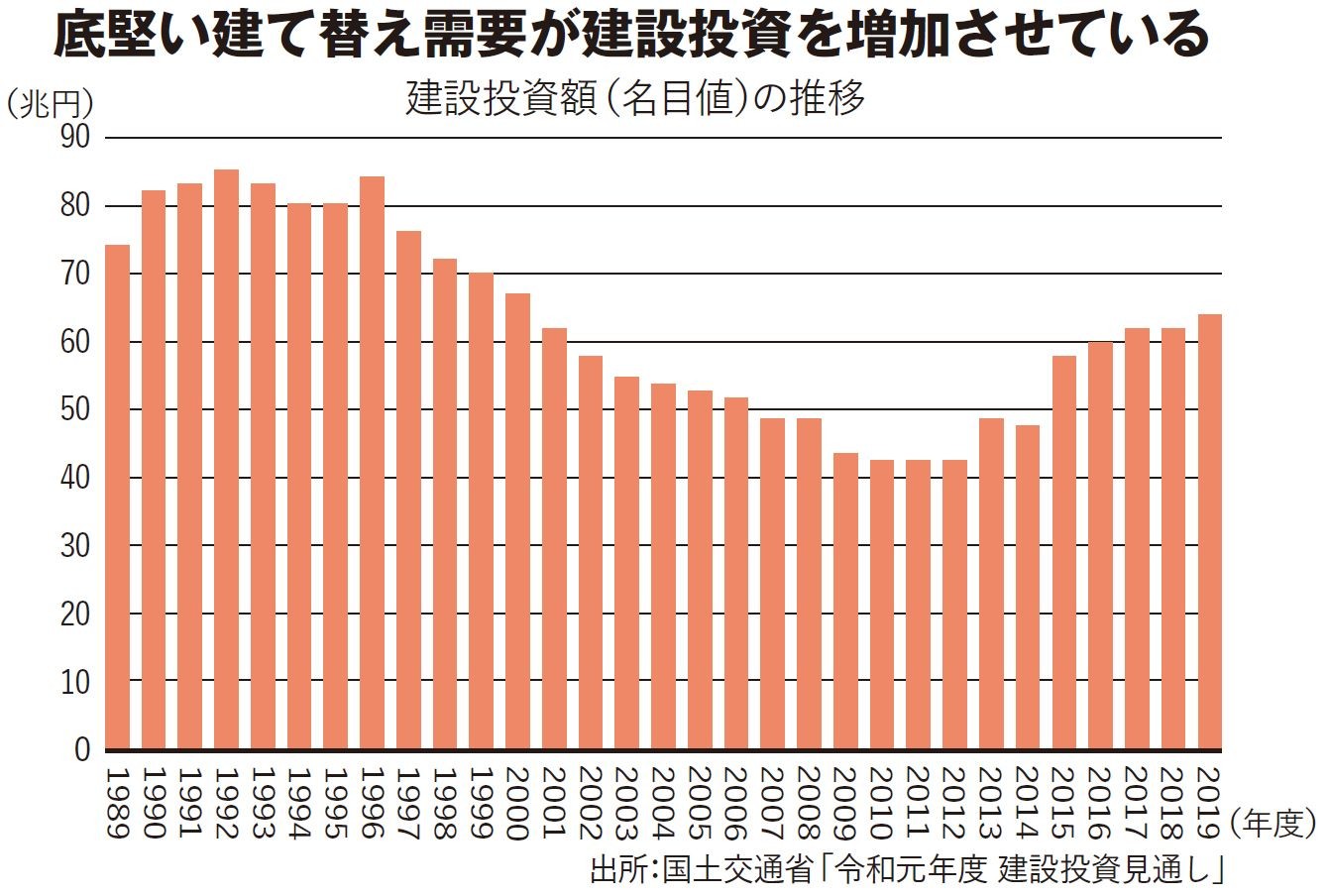 こういった傾向からも、大成建設が予想するほどの売り上げの減少は実際には起こらず、コロナによる今期の業績への影響は限定的だと考えられる。ただし、これを長期的な視点で考えれば話は変わる。今期の新規受注が減れば、それは来期以降の売り上げに大きく響く可能性があるからだ。受注環境が悪化すれば価格競争が起きるので、1~2年後の採算が落ちてしまう。他業界であれば「今期は業績が落ち込むが、来期以降に一気に回復する」というシナリオを描ける場合もあるだろうが、建設業界には当てはまらない。