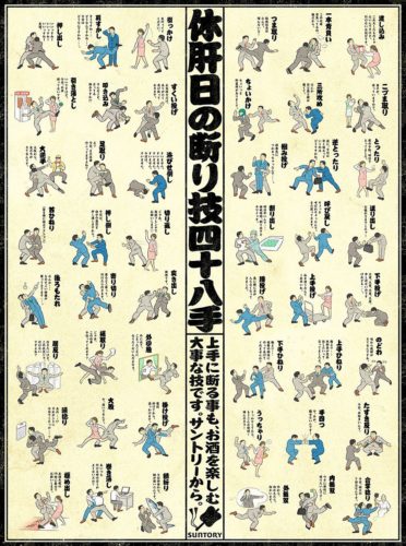 相撲の技にたとえた表現に思わず笑ってしまいます。サントリーが出しているポスターで、他にもフィギュアスケートやサッカーバージョンもあるようです。