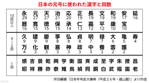 元号は紀元前の中国、前漢の武帝の時代に、漢字と数字の