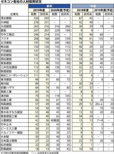 日刊建設工業新聞社が主要ゼネコン33社を対象に実施した採用アンケートで、